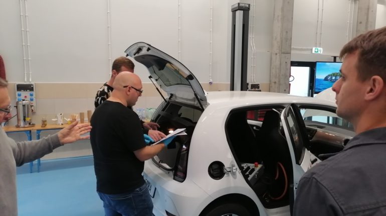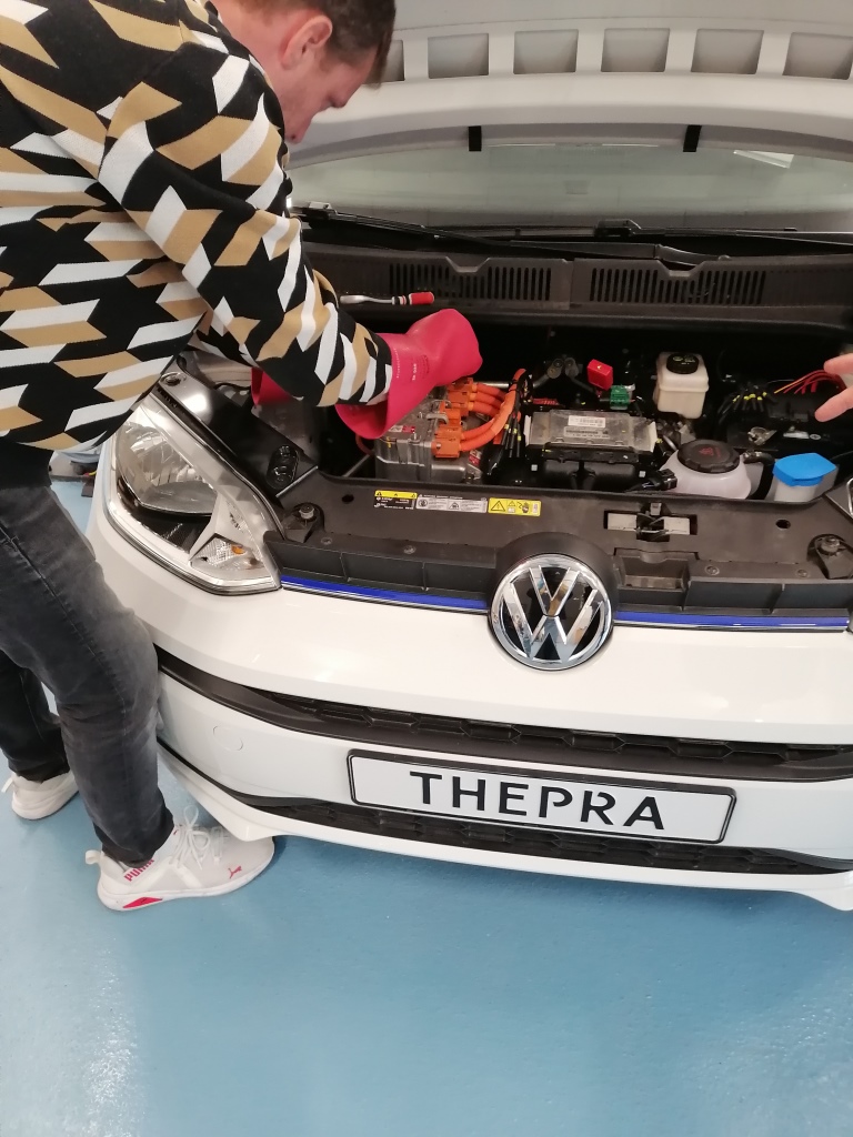 22 września 2025 roku w godzinach od 8.00 do 16.00 odbyło się szkolenie z obsługi auta elektrycznego „e-up” oraz symulacji usterek i wskazania metod ich usuwania, dla nauczycieli „Elektryka” oraz osoby , która będzie prowadzić zajęcia w ramach kursów. Szkolenie prowadzili pracownicy firmy THEPRA, która była wykonawca samochodu jako pomocy dydaktycznej.