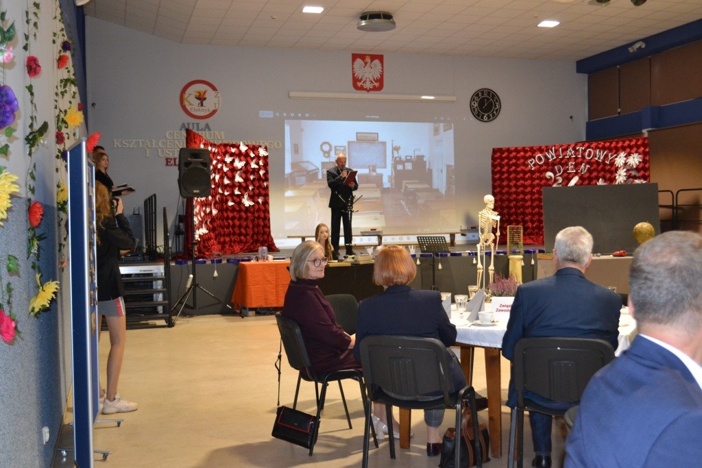 9 października w Auli naszej szkoły odbyły się powiatowe obchody Dnia Edukacji. Starosta Nowosolski nagrodził wyróżniających się nauczycieli i pedagogów z placówek oświatowych Powiatu Nowosolskiego. Tegoroczne obchody okraszone były program artystycznym przygotowanym przez nauczycielki naszej szkoły, panie: Joannę Roguską, Agnieszkę Truty, Urszulę Chorążyk oraz Małgorzatę Bińkowską a głównymi aktorami byli uczniowie „Elektryka”