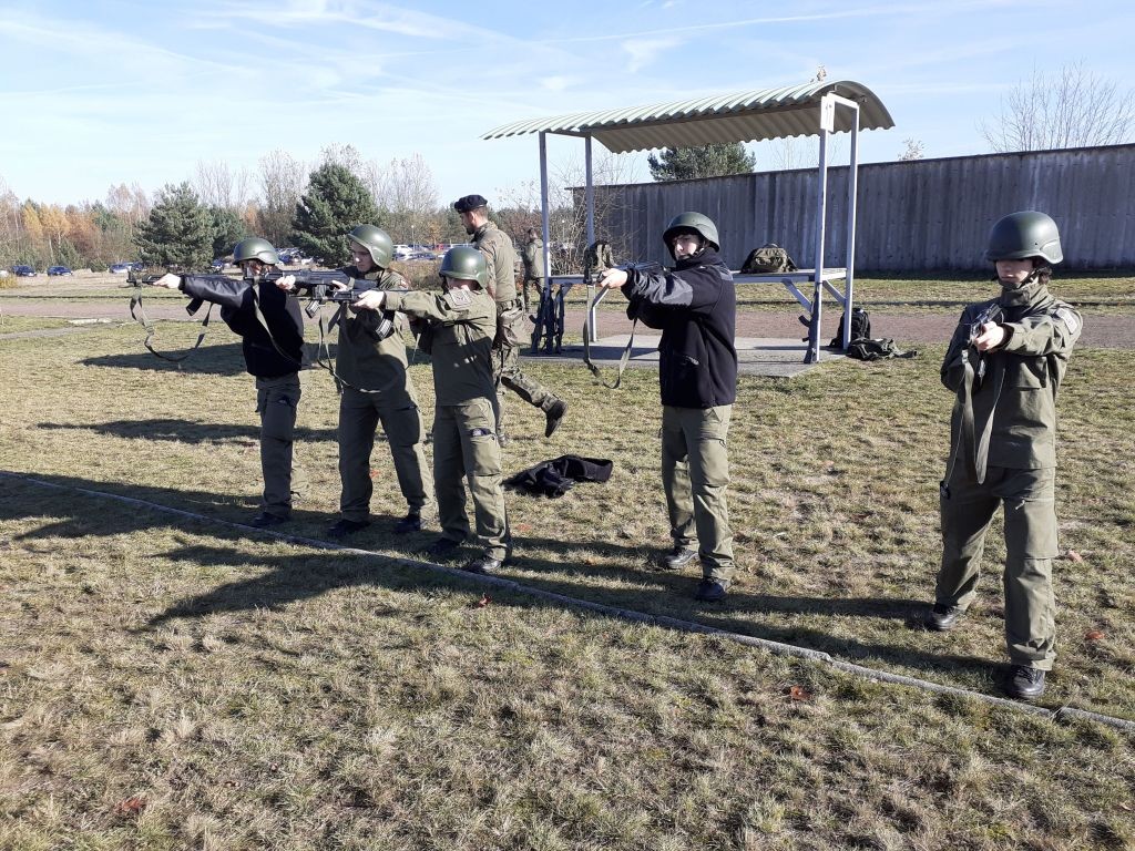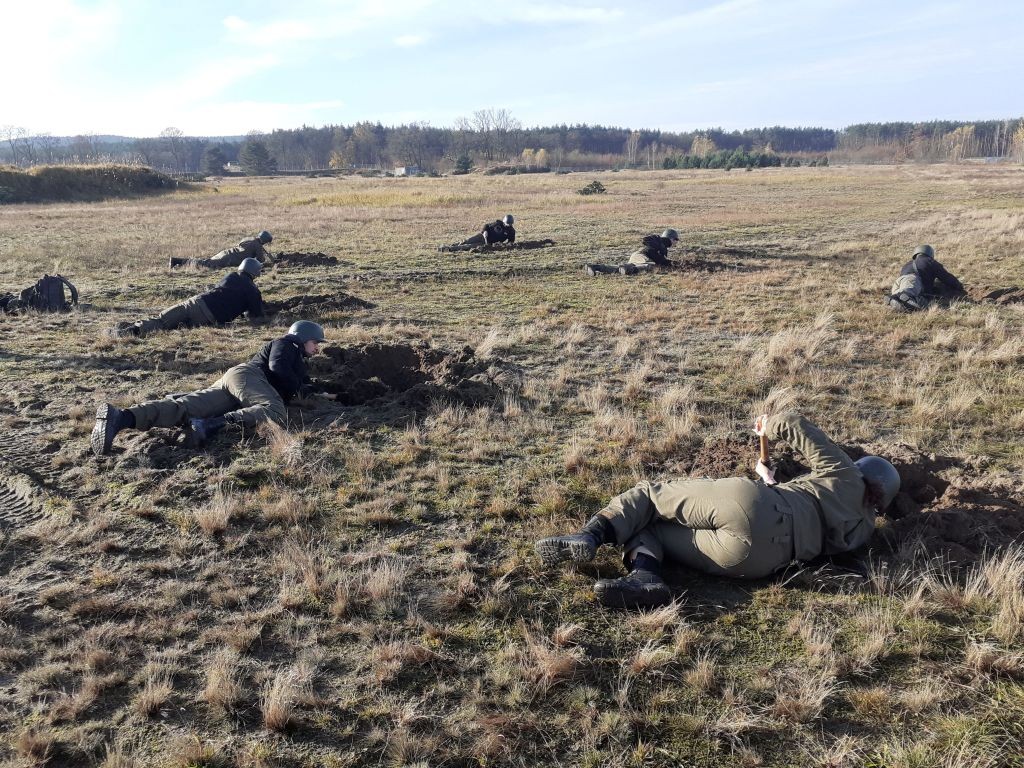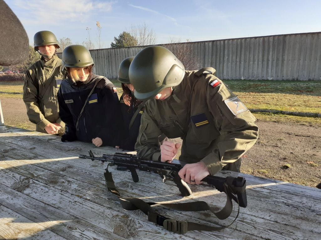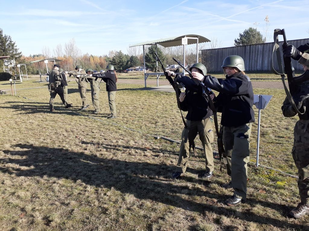 Listopad jest kolejnym miesiącem realizacji przez nasze Oddziały Przygotowania Wojskowego zajęć na obiekcie przykoszarowym jednostki patronackiej, czyli 4 Zielonogórskiego Pułku Przeciwlotniczego w Czerwieńsku. Klasa 3 OPW realizowała cztery tematy. Zajęcia z rozpoznania drogi marszu i terenu, wykonując odręczny szkic terenu. W ramach szkolenia saperskiego wykonali stanowisko ogniowe do pozycji leżąc, a na SERE doskonalili umiejętność rozpalania ognia oraz uczyli się budować schronienie z dostępnych w terenie materiałów. Ostatnim tematem było działanie na posterunku ochronno-kontrolnym. Mundurowi uczyli się kontroli pojazdów oraz ludzi. Natomiast klasa 2 OPW realizując szkolenie strzeleckie doskonaliła umiejętność przyjmowania postaw strzeleckich oraz uczyła się taktycznej wymiany magazynka w karabinku „Beryl”. Ostatnim elementem zajęć było zaliczenie rozkładania i składania karabinka „Beryl” na czas. Wielu uczniom udało się osiągnąć czasy godne zawodowych żołnierzy.