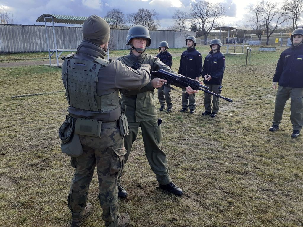 Od października, nasze Oddziały Przygotowania Wojskowego zaczęły praktyczne szkolenie wojskowe w jednostce patronackiej, czyli w 4 Zielonogórskim Pułku Przeciwlotniczym w Czerwieńsku. Zajęcia w klasach 1-3 rozpoczęły się od zaliczenia wojskowego testu sprawności fizycznej. Kolejne tematy w klasie 3 OPW związane były z taktyką oraz wojskowym survivalem. W ramach taktyki nasi mundurowi doskonalili umiejętności z maskowania, pokonywania pola walki różnymi sposobami oraz wykonywania marszu ubezpieczonego. Ćwiczyli również zasady zachowania żołnierza w kontakcie z przeciwnikiem, zrywania tego kontaktu jak również działania w rejonie ześrodkowania. Na zajęciach z survivalu uczyli się natomiast rozpalania ognia przy pomocy krzesiwa i dostępnego w terenie „paliwa”. Z kolei uczniowie klasy 2 OPW skupili się na szkoleniu strzeleckim. Z wykorzystaniem trenażera „Czantoria” uczyli się zgrywania przyrządów celowniczych i celowania karabinkiem „Beryl” oraz jego rozkładania i składania. Poznali również obowiązujące w wojsku postawy strzeleckie, zgodne z najnowszym programem strzelań z broni strzeleckiej. Kolejne zajęcia praktyczna w listopadzie.