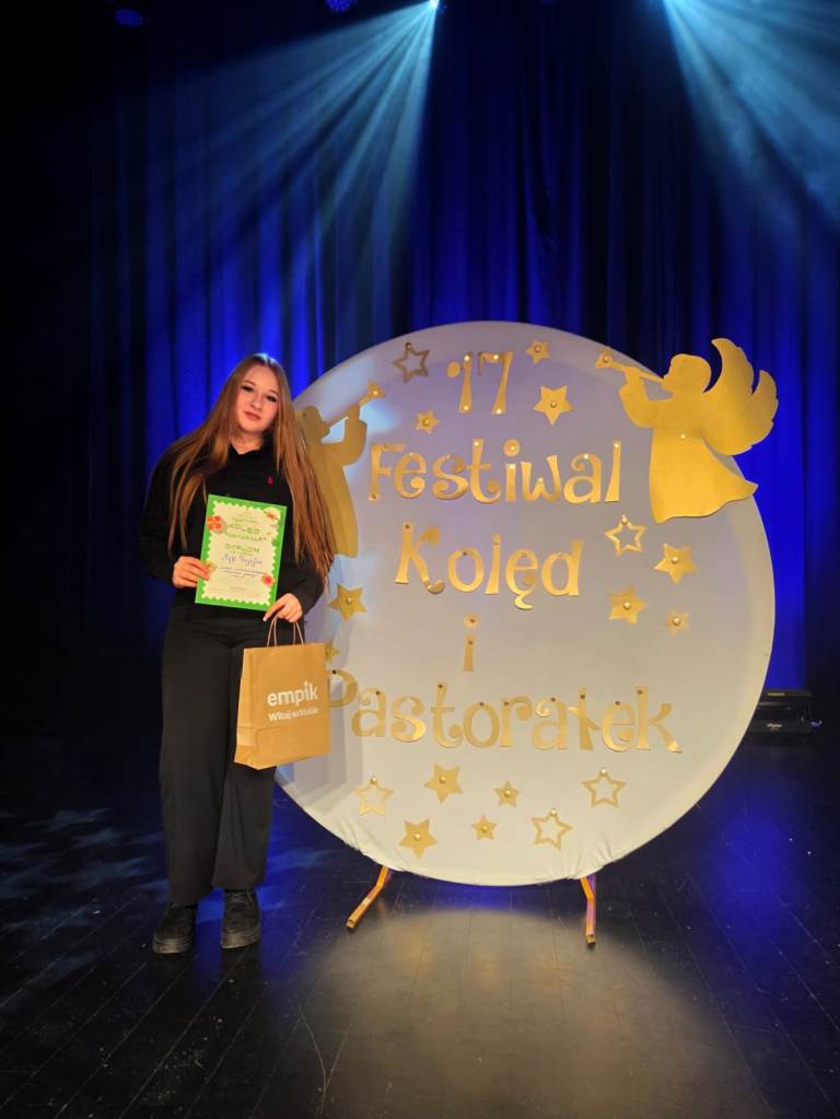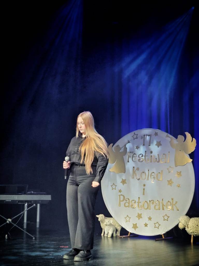 Podczas świąt Bożego Narodzenia nie może zabraknąć zapachu choinki, smaku tradycyjnych potraw oraz przepięknych dźwięków kolęd i pastorałek. Tych ostatnich z pewnością nie brakowało 28 stycznia 2026 roku. W Nowosolski Domu Kultury odbył się XVII Powiatowy Konkurs Kolęd i Pastorałek. Naszą szkołę reprezentowała Maja Przybyłek z klasy 1E TN, która pieśnią bożonarodzeniową „Noel” wywalczyła 2 miejsce.