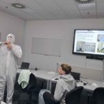 Podczas zajęć w VR uczestniczyliśmy w treningu z zakładania stroju ochronnego do clean roomu oraz przygotowania do demontażu maszyny na części pierwsze. Następnie, w wirtualnym „escape roomie”, realizowaliśmy proces wytwarzania wafli krzemowych – od surowca po gotowy produkt, ucząc się kolejnych etapów technologicznych, zasad bezpieczeństwa i procedur fabrycznych.